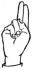 На ћирилици написано МИНА ЈЕЛОВАЦ састоји се из 11 слова [?]. Исписано ћириличном једноручном азбуком за глувонеме: